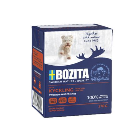 Kurczak 28% (suszone białko kurczaka 20%, świeżo przygotowany kurczak 8%), skrobia grochowa*, suszone ziemniaki*, białko grochu, tłuszcz zwierzęcy 6%, łoś (świeżo przygotowany 4%), suszony miąższ buraczany*, hydrolizowane białko zwierzęce 2,5%, suszone białko rybne 2%, lignoceluloza*, minerały, suszone jaja* 1%, olej roślinny, inulina z cykorii* (źródło FOS 0,49%), drożdże*, siemię lniane*, suszone maliny moroszki* 0,005%, suszone bażyny* 0,005%. *Naturalne składniki
