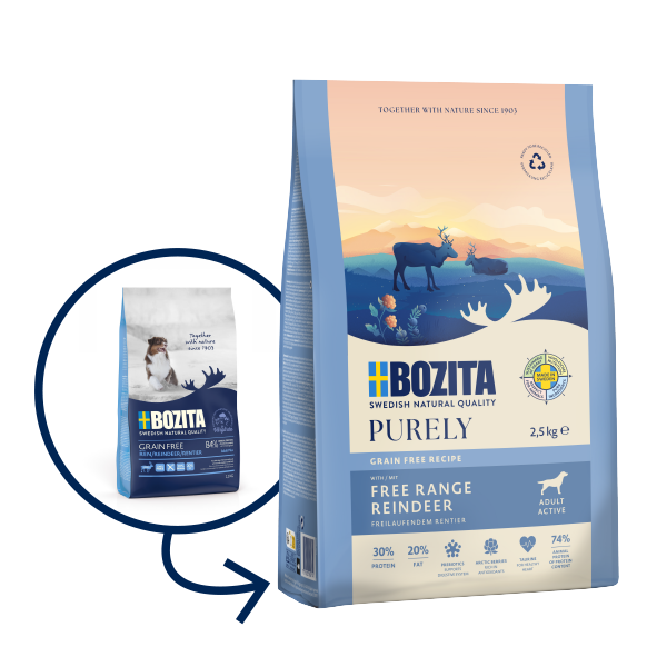 Zawiera smaczne, świeżo przygotowane mięso renifera i kurczaka. Dla aktywnych psów dodaliśmy dodatkową witaminę C. Produkt zawiera dobrze zbilansowane poziomy kwasów omega 3 i 6. Wielkość krokietów jest odpowiednia dla wszystkich ras.